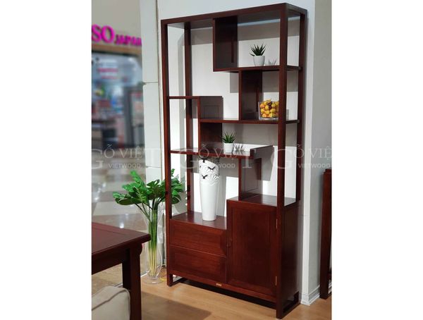 Sản phẩm được hoàn thiện đẹp 2 mặt nên sử dụng làm vách ngăn phòng chắc chắn và thuật tiện. Khoảng cách đợt và khoang trang trí có kích thước cao - thấp và rộng - hẹp khác nhau giúp khách hàng trang trí không gian nội thất được nhiều hình khối đa dạng hấp dẫn.
