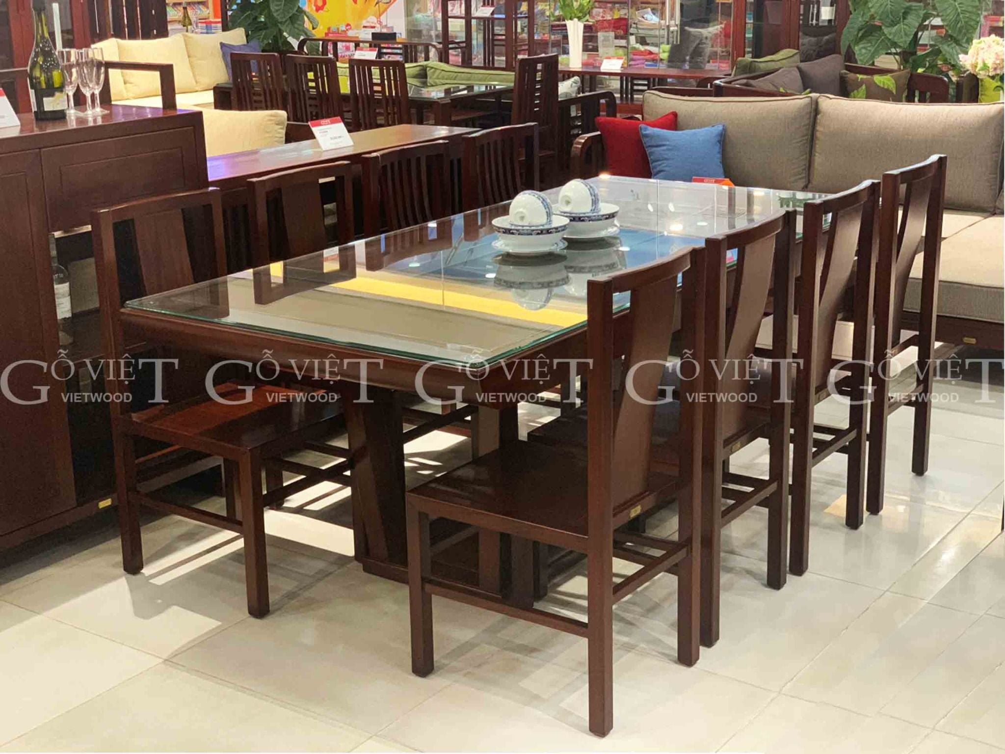 Mỗi cạnh bàn có thể bày được 4 ghế . Bàn ăn dành cho từ 8 đến 10 người ngồi.