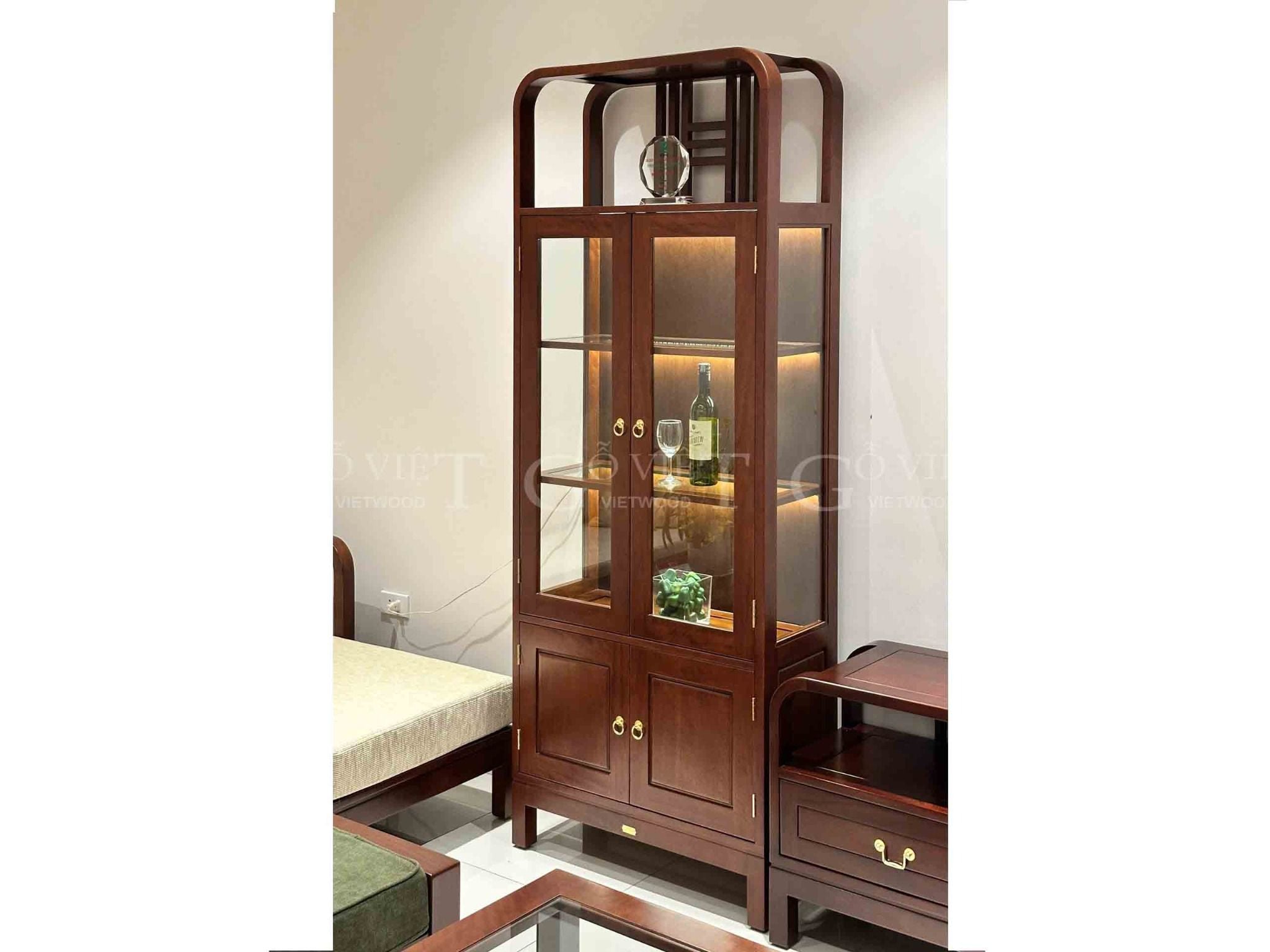 Mã sản phẩm: TR80-LXRTên sản phẩm : Tủ rượu LuxuriaKích thước(mm): liên hệ để biết thông tin chi tiếtChất liệu: Gỗ Hương tự nhiên Bảo hành: 5 năm Giá trên đã bao gồm thuế VAT * Dòng sản phẩm LUXURIA – có nghĩa là “Sang trọng ”: Được thiết kế với các đường thẳng và chi tiết nan gỗ ngang và dọc dứt khoát nhưng hài hòa nhờ kết hợp các chi tiết gỗ cong lớn ở đầu các sản phẩm, làm toát lên sự mềm mại và sang trọng. Sản phẩm nhìn thì rất đơn giản nhưng hệ thống chân và sàn với những điểm nhấn phân lập cầu kỳ trong sản xuất làm sản phẩm toát lên vẻ sang trọng, duyên dáng.